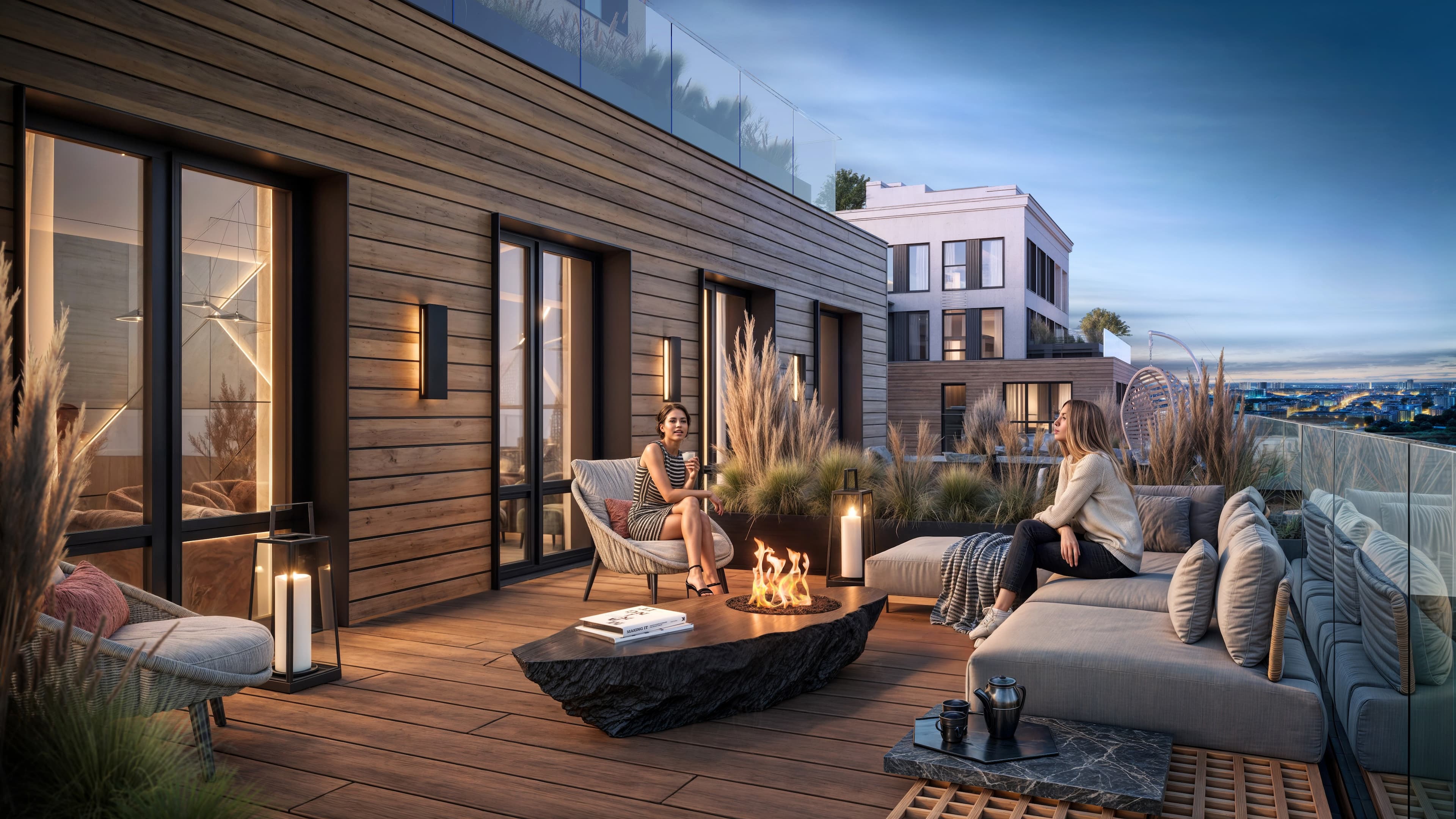 Лаунж-зона на даху дозволяє влаштувати спільний кіновечір із сусідами під відкритим небом або BBQ-вечірку з бесідами про мистецтво. Ви можете спонтанно влаштувати побачення під зірками або наодинці насолодитися панорамною красою.