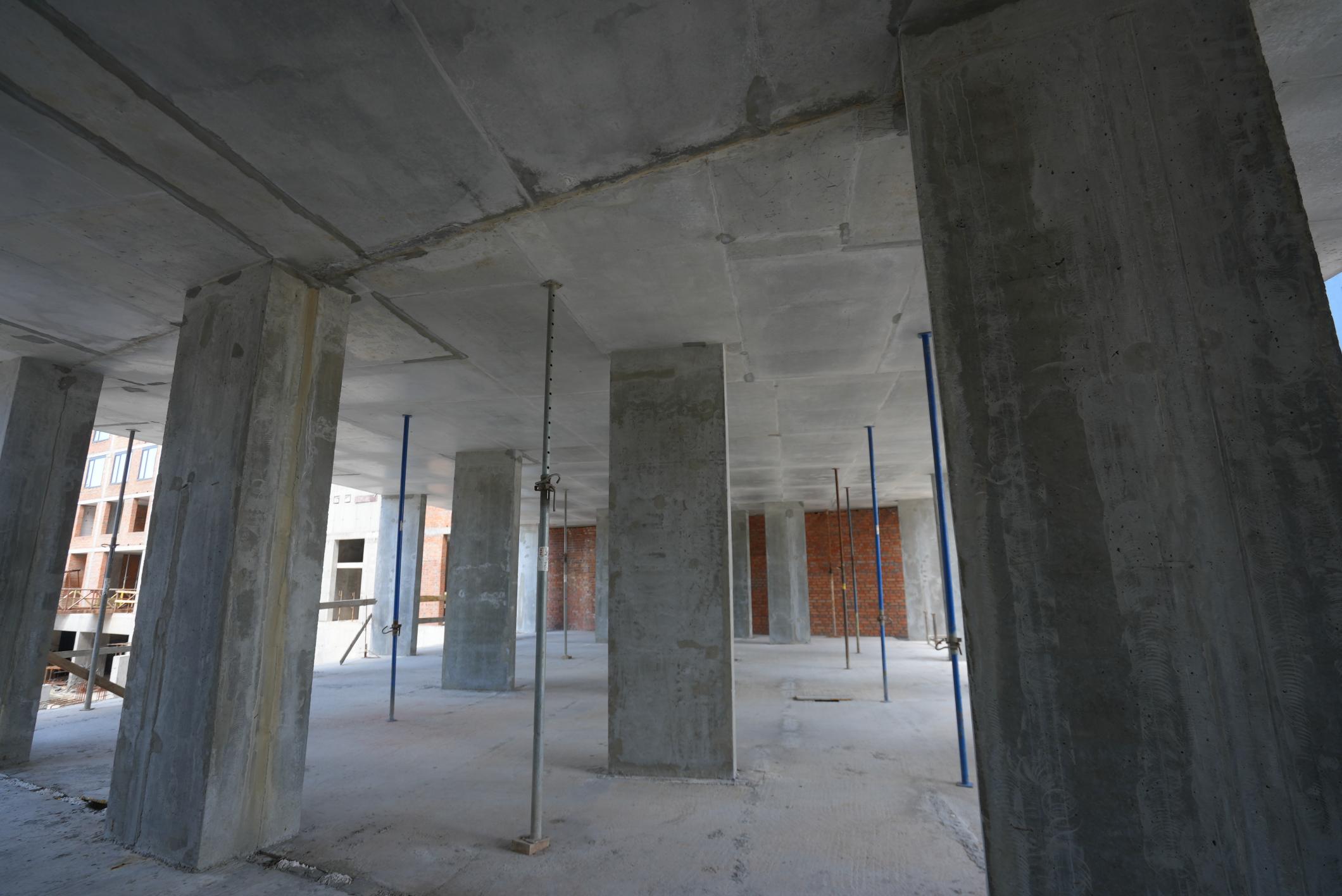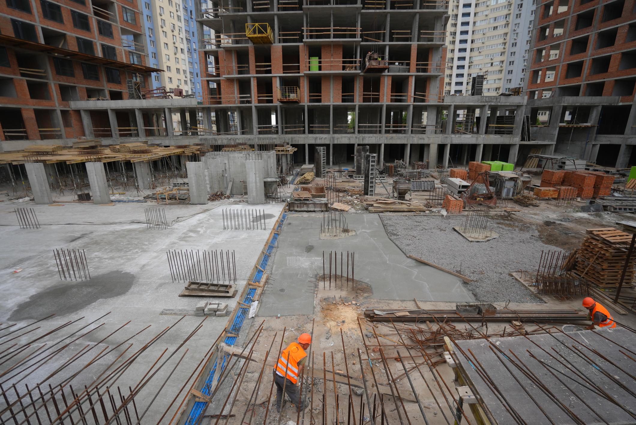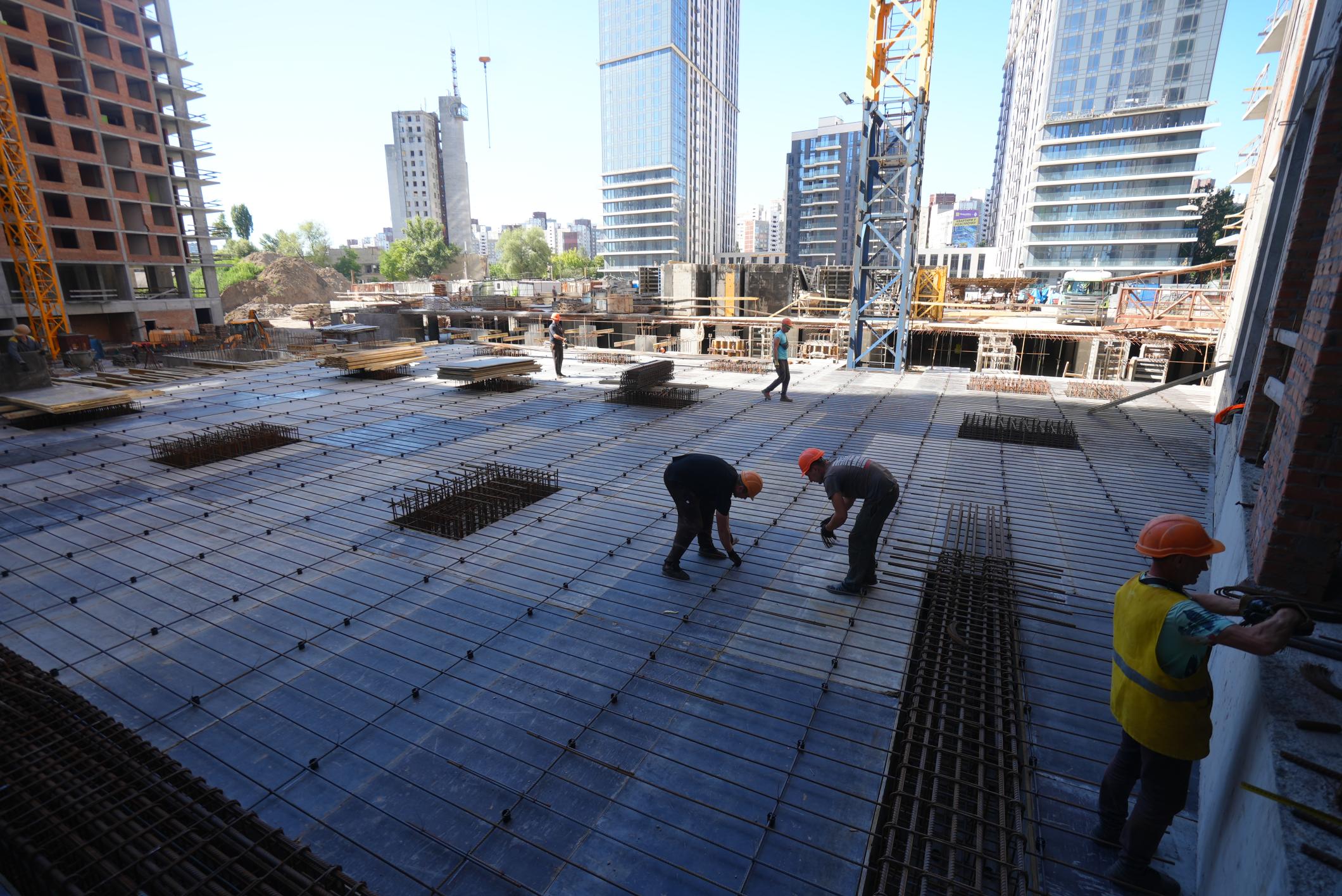 • тривають роботи з улаштування вертикальних конструкцій паркінгу та плити перекриття.