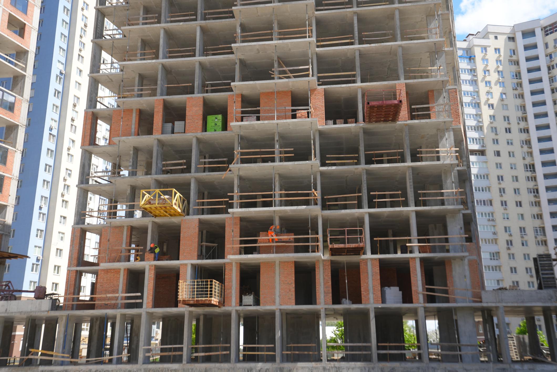 • триває цегляна кладка стін на 2, 3, 5 та 6 поверхах.