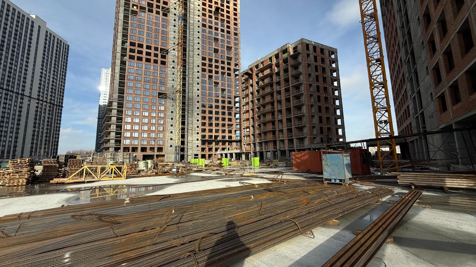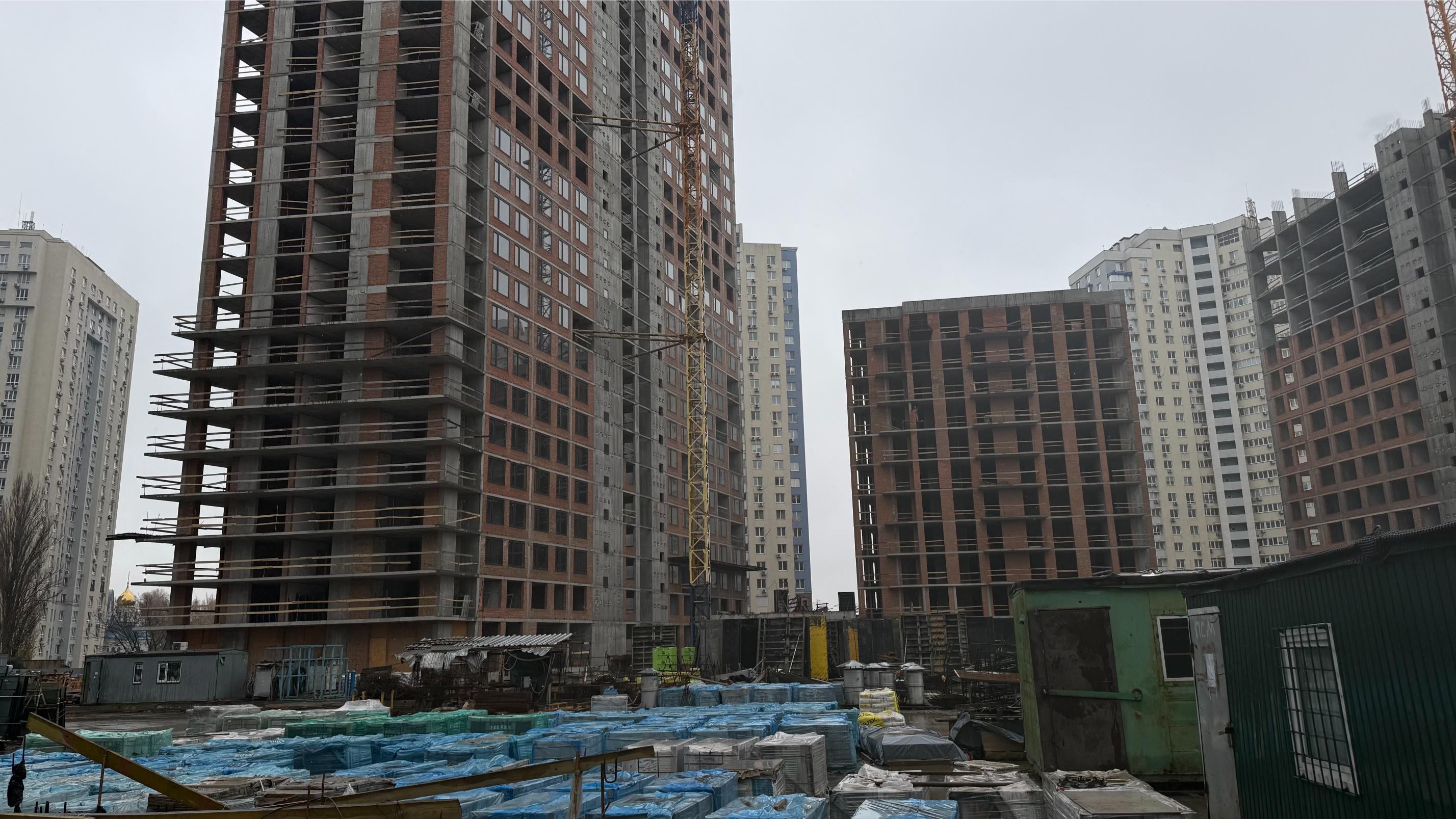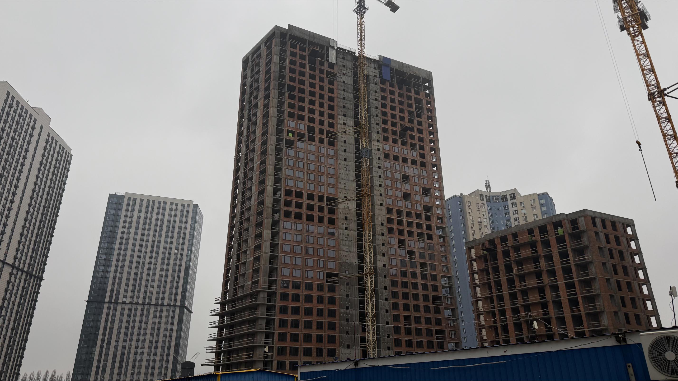 • цегляна кладка стін з 1 по 32 поверх – 100%, в роботі з 33 по 34 поверх – 60%.