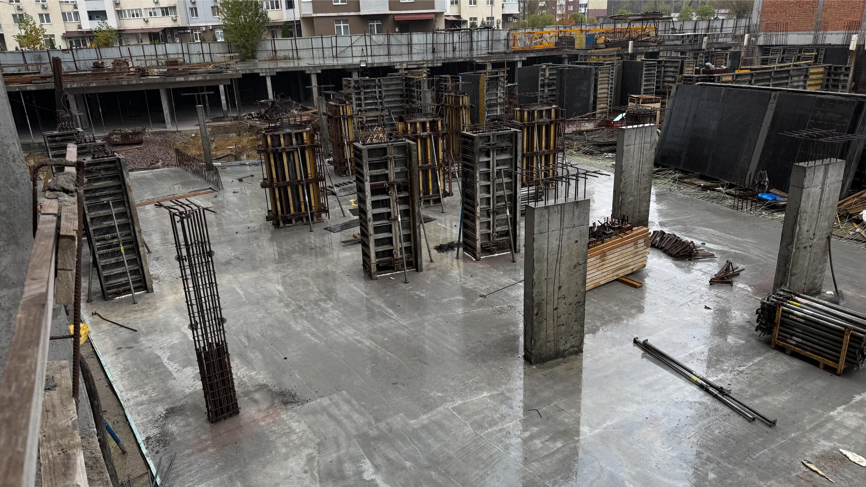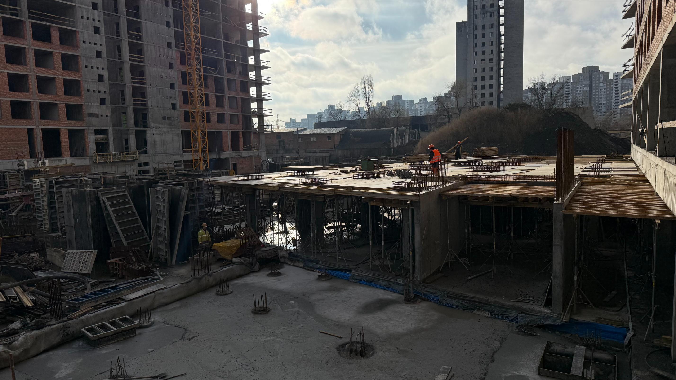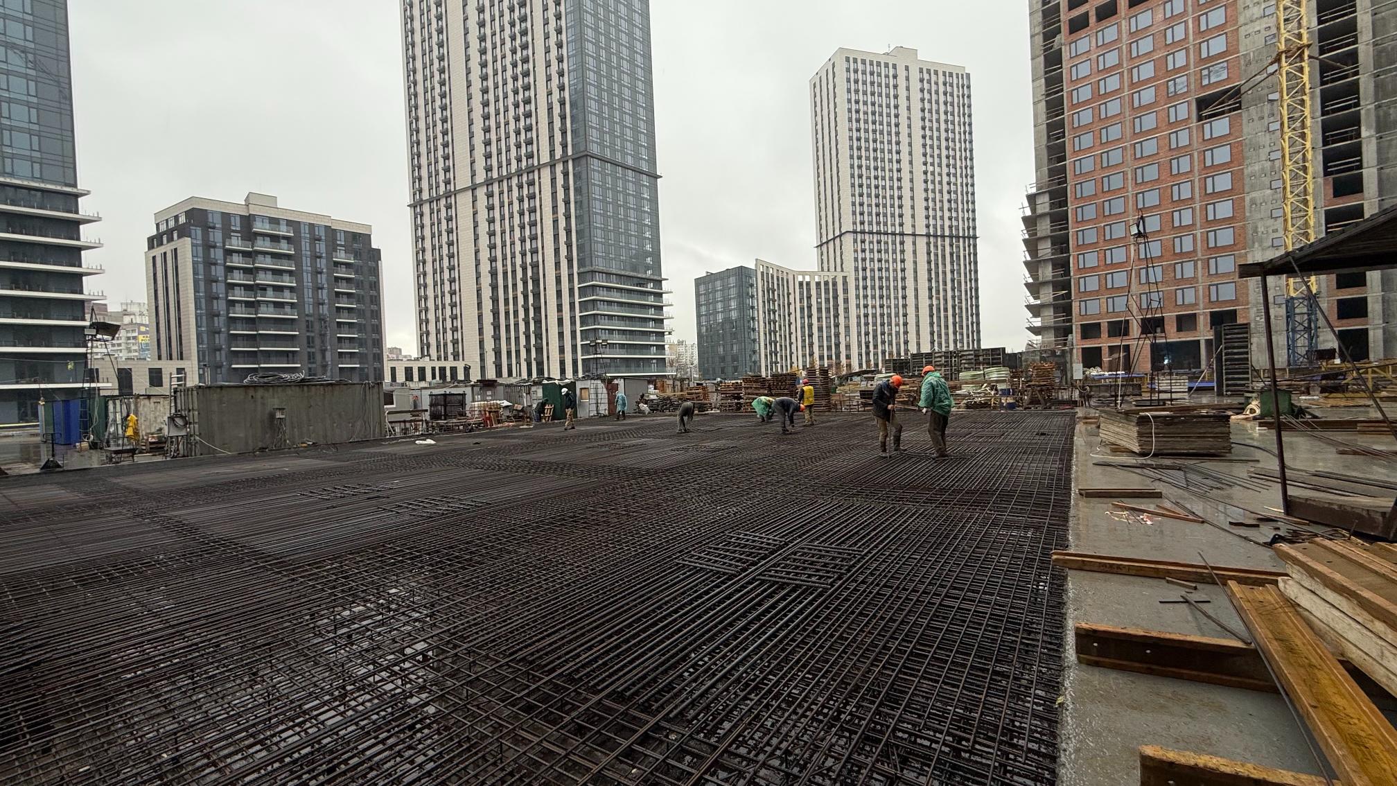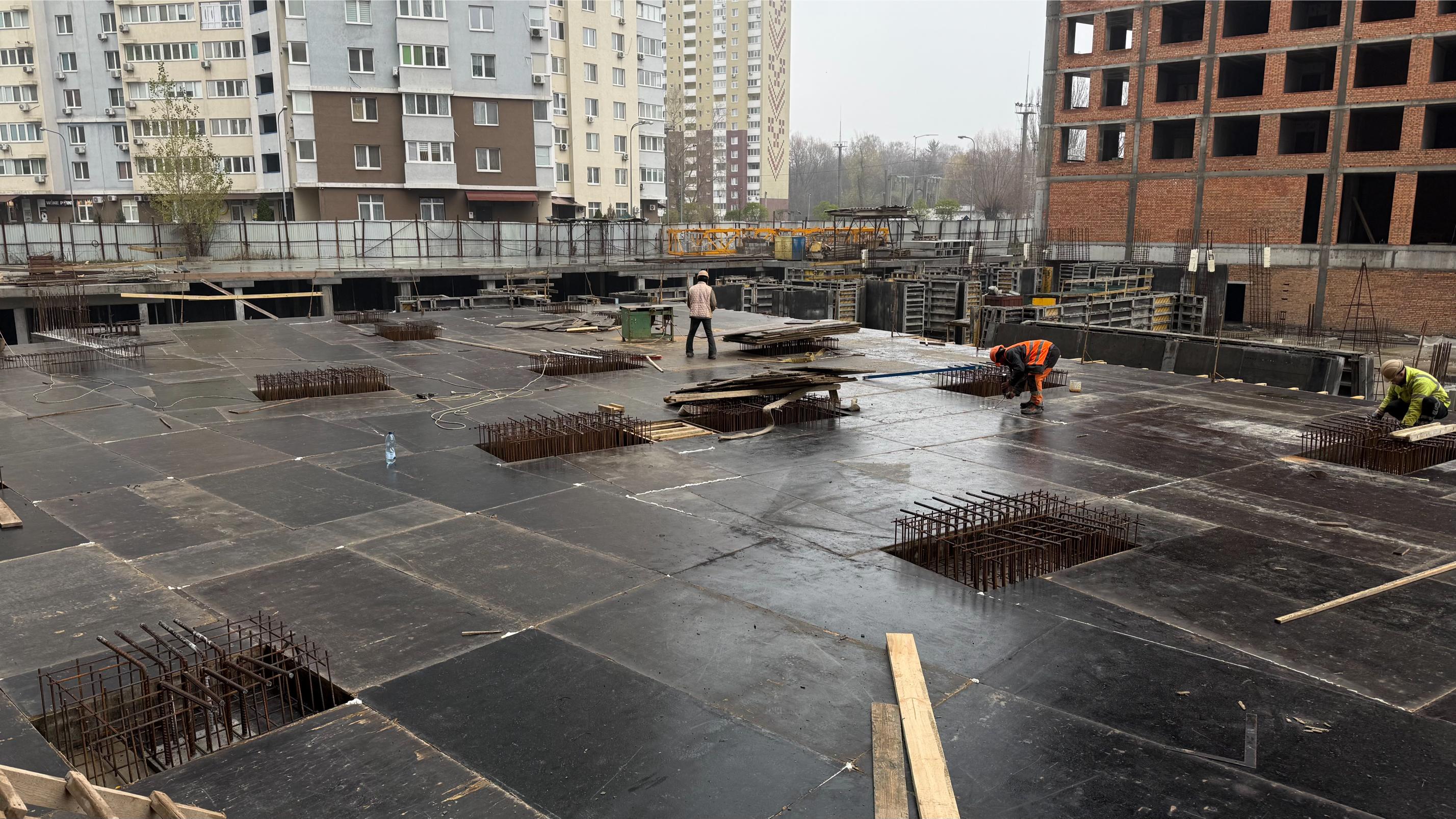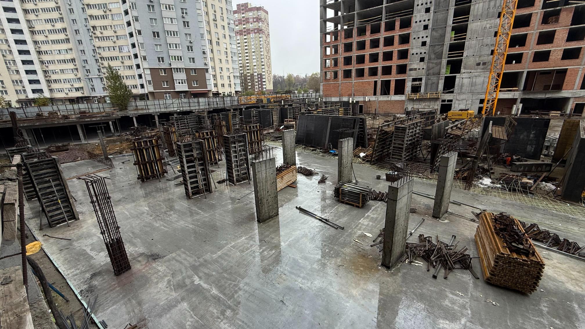 • тривають роботи з улаштування вертикальних конструкцій паркінгу – 85%, плити перекриття – 65%.