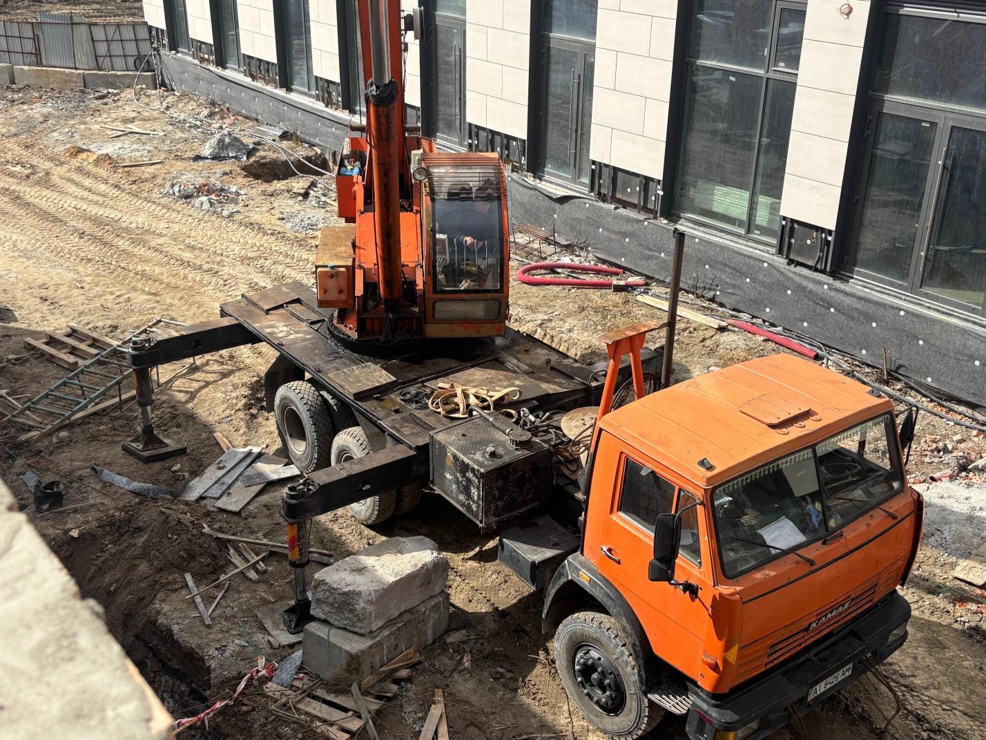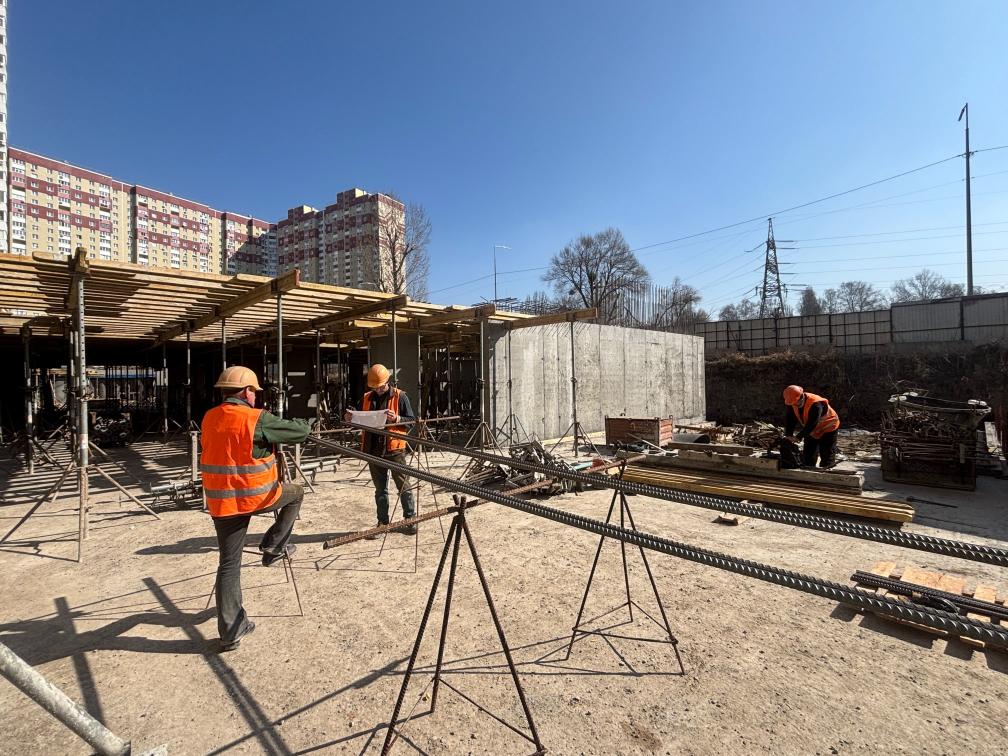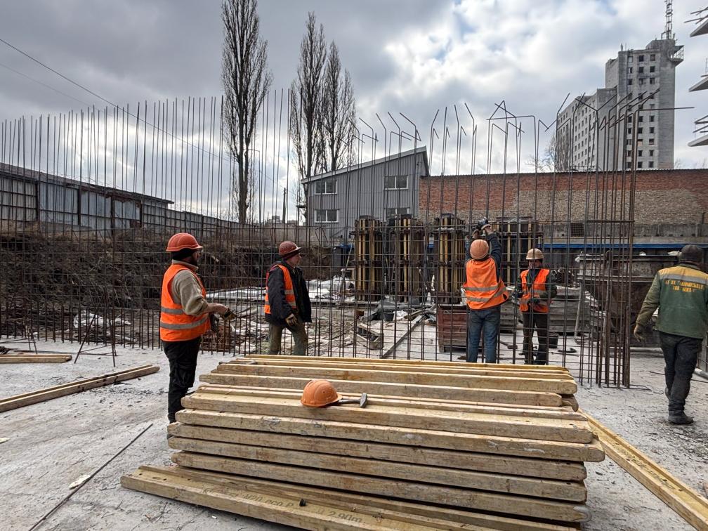 виконуються роботи з улаштування монолітних конструкцій паркінгу та підпірних стін.