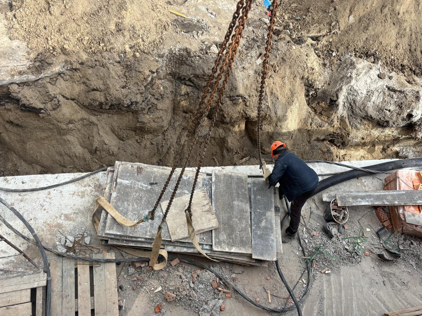 виконуються роботи з улаштування цегляної кладки підвалу.